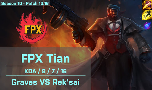 | FPX Tian Graves JG vs Reksai - KR 10.16 |